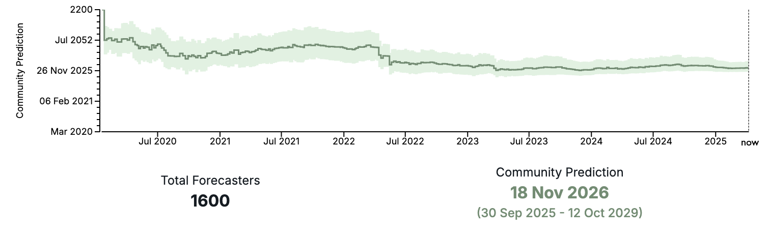 La moyenne des estimations sur le site Metaculus donne un cap franchi le 18 novembre 2026, mais chacun ou presque peut y donner sa prédiction hasardeuse.