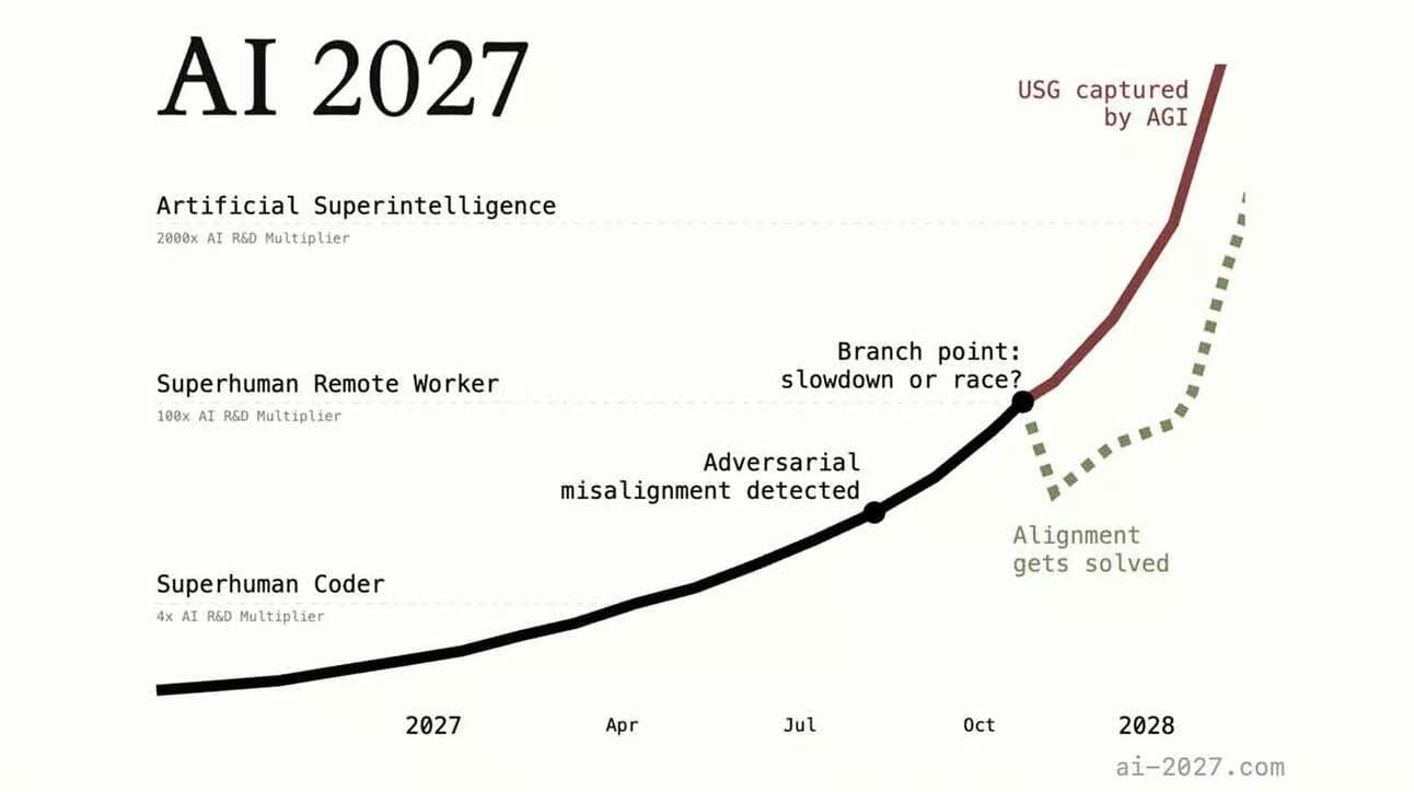 - AI 2027 : L'ancien chercheur d'OpenAI, Daniel Kokotajlo, et le projet AI Futures ont publié « AI 2027 », prédisant une avancée vers une IA surhumaine d'ici 2 ans, déclenchant potentiellement une explosion de l'intelligence avec des conséquences pour l'humanité. Le rapport décrit un calendrier commençant par des agents d'IA de plus en plus performants en 2025, évoluant vers des systèmes de codage surhumains, puis vers une AGI complète d'ici… 2027. Eh oui, déjà.