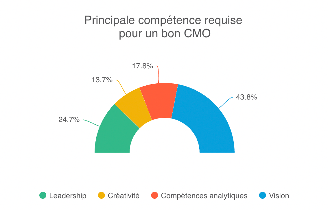 Pour près de 44% d'entre vous, c'est bien la vision la compétence la plus essentielle pour un CMO. J'y reviens plus bas.