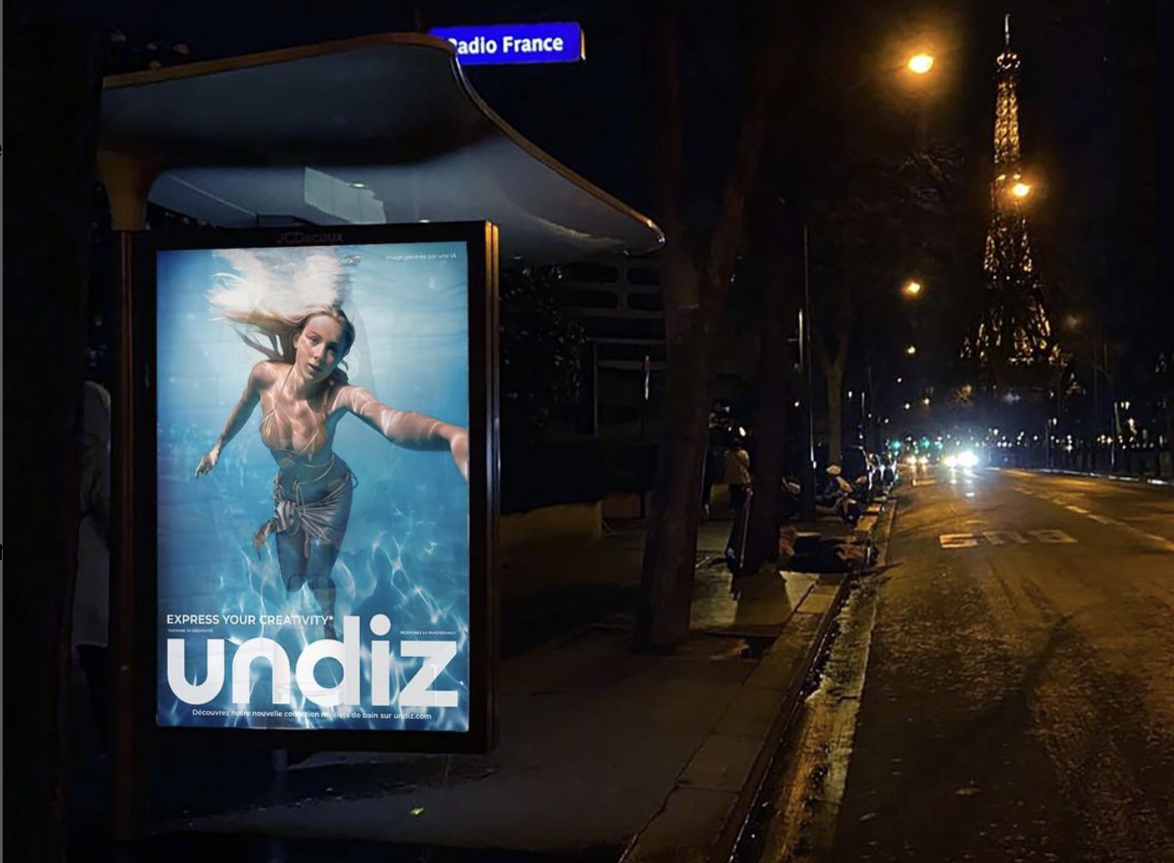 👙 Première campagne IA outdoor en France. La marque de lingerie Undiz a mobilisé l'IA générative d'image pour une campagne d'affichage dans 60 villes de France.