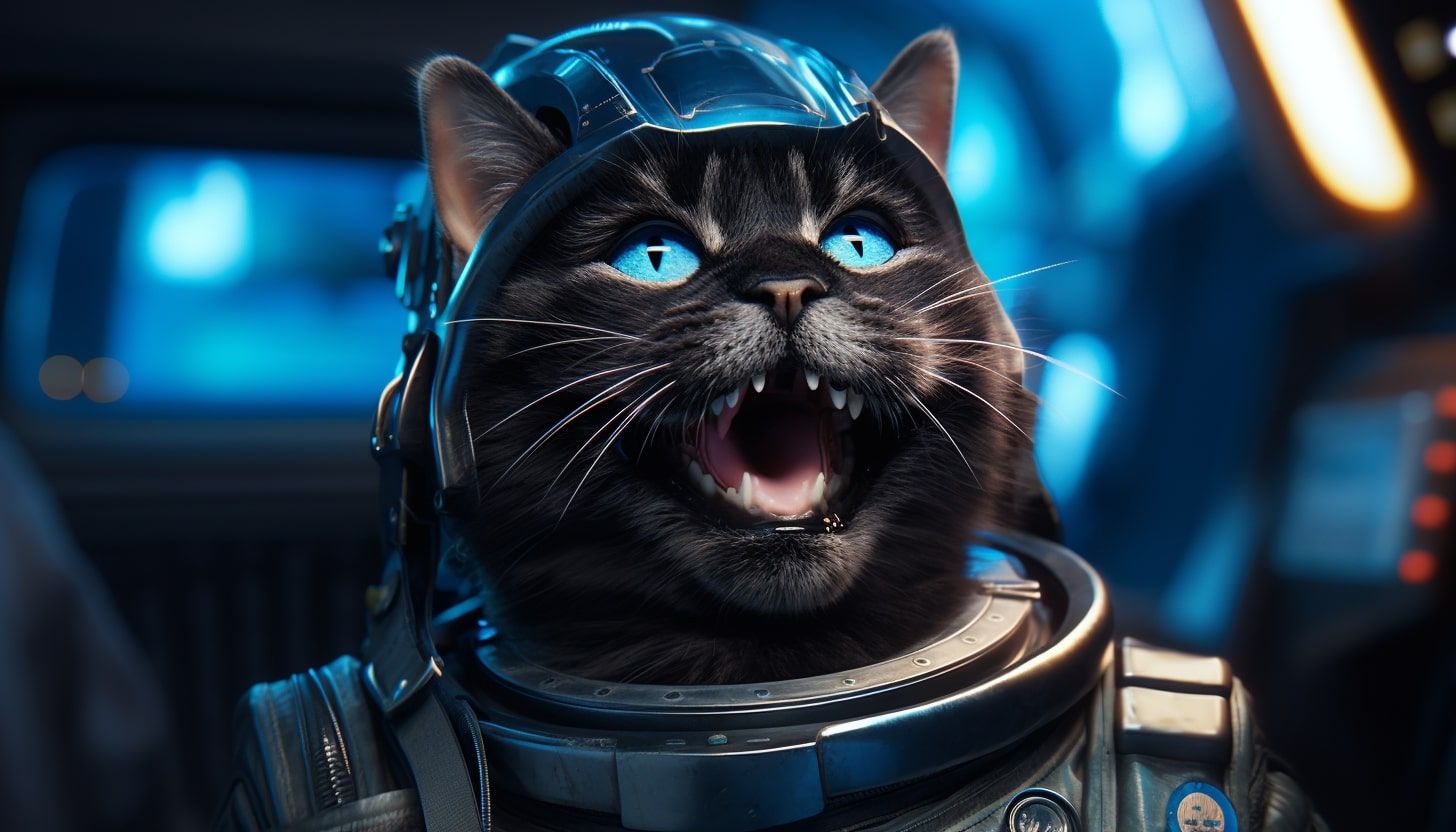 OK, c'est un chat astronaute, mais hurle-t-il de joie ou d'effroi ? Il y a une petite ambiguïté.