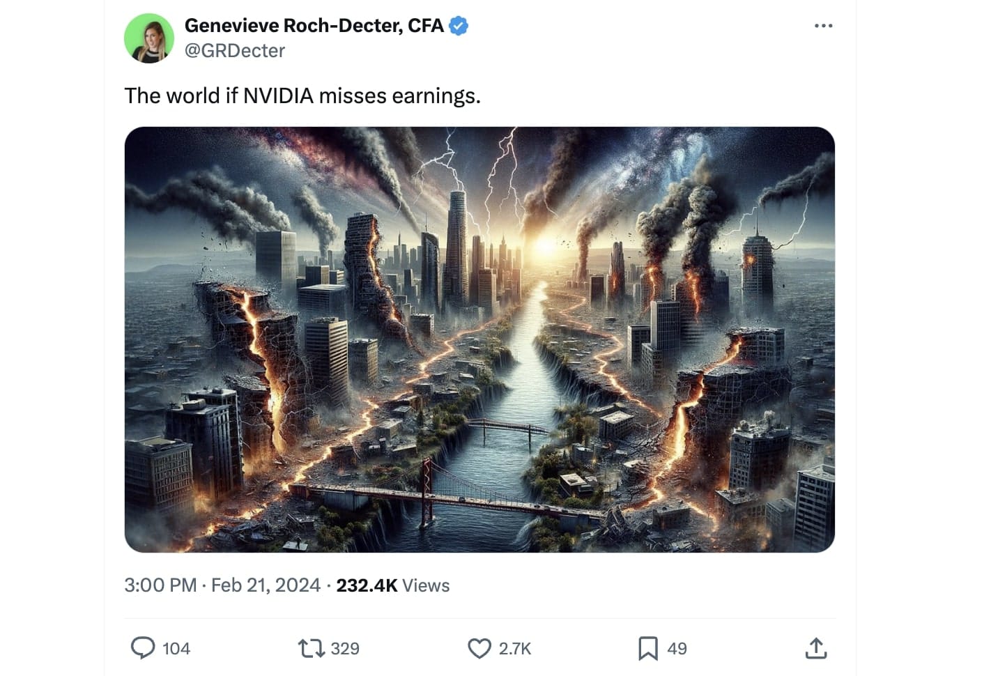 📊 En une journée après l'annonce de ses résultats trimestriels, Nvidia a gagné $277Mds de valeur boursière, soit le plus gros gain sur une journée de l'histoire de Wall Street de l'histoire.