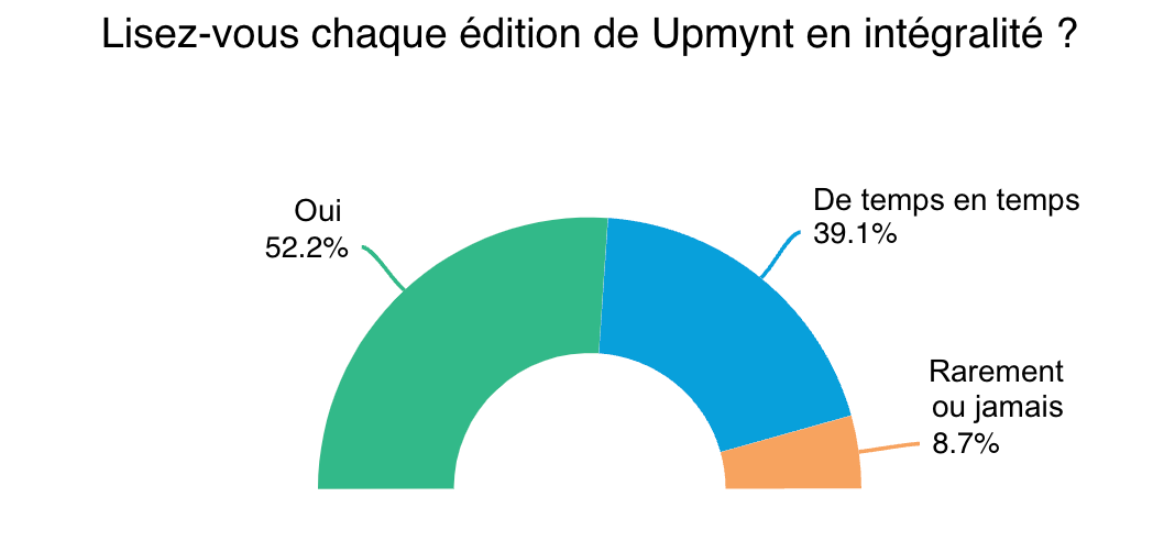 Une (petite) majorité d'entre vous dévore entièrement chaque édition, ce qui est plutôt une bonne nouvelle. Vous êtes quand même près de la moitié à les lire le plus souvent partiellement.