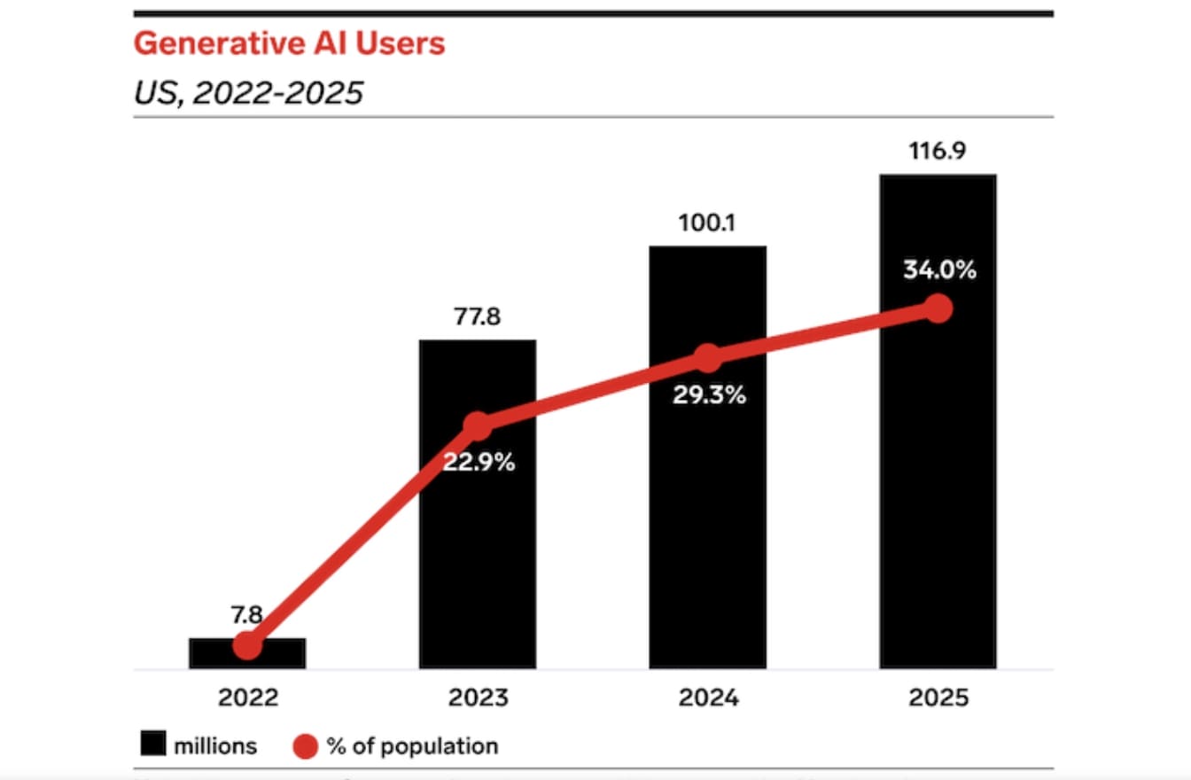 📈 100 millions. C'est le nombre d'utilisateurs de l'IA générative attendus en 2024 rien qu'aux US.