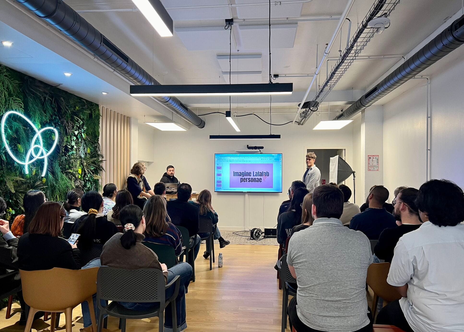 L'équipe Lalalab a été divisée en 3 groupes en fonction de leurs métiers (focus marketing, produit, IT…). Après une formation express sur les outils et techniques à mobiliser, chaque groupe a été mis au défi avec un challenge à réaliser dans le temps imparti (générer une vidéo publicitaire, créer un bot personnalisé, etc).