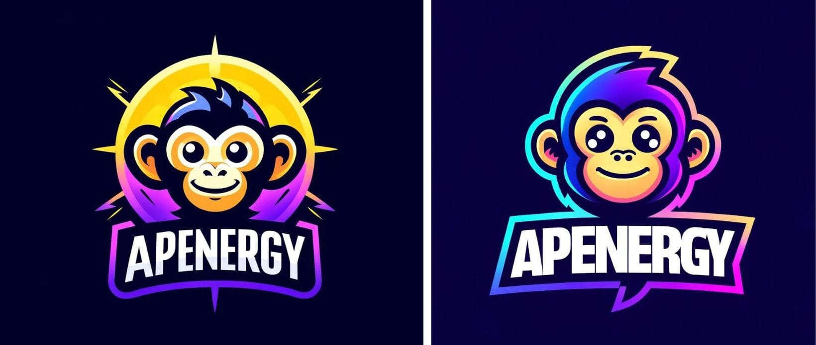 Génère 4 variations de visuels (en générant 4 visuels séparément l'un après l'autre) pour APENERGY, ma marque de boisson énergisante pour adolescents.- Le logo devrait communiquer l'intensité, la puissance, l'énergie
