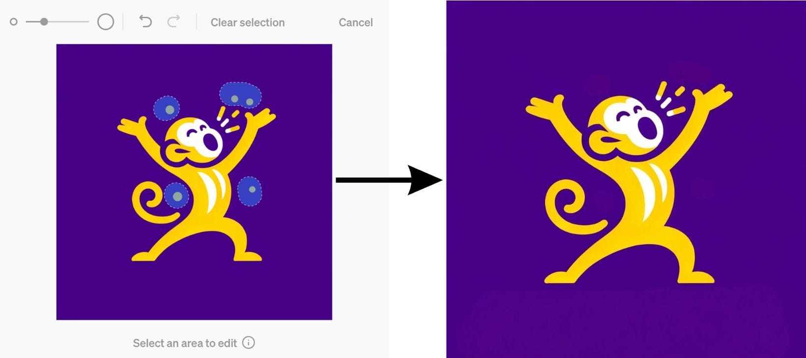 Si Dall-e a inclus des éléments parasites, pensez à la nouvelle fonctionnalité d'édition. Cliquez sur le visuel concerné, puis sur le symbole "edit" dans le menu du haut, et sélectionnez au pinceau les éléments à retirer, puis ordonnez à ChatGPT (dans le chat latéral) de supprimer les éléments surlignés.