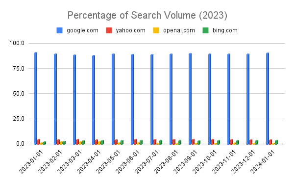Alors que Gartner prédisait une baisse de la search traditionnelle au profit des assistants IA (carrément de l'ordre de -25% en 2026), les récentes données montrent que la recherche Google résiste plutôt très bien à l'arrivée de ChatGPT.