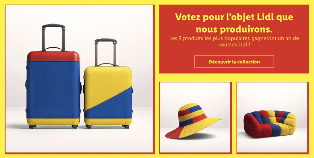 🛒 Lidl : opé originale. La chaine de supermarchés propose un générateur IA baptisé "Lidlize" pour imaginer le prochain produit aux couleurs de la marque.
