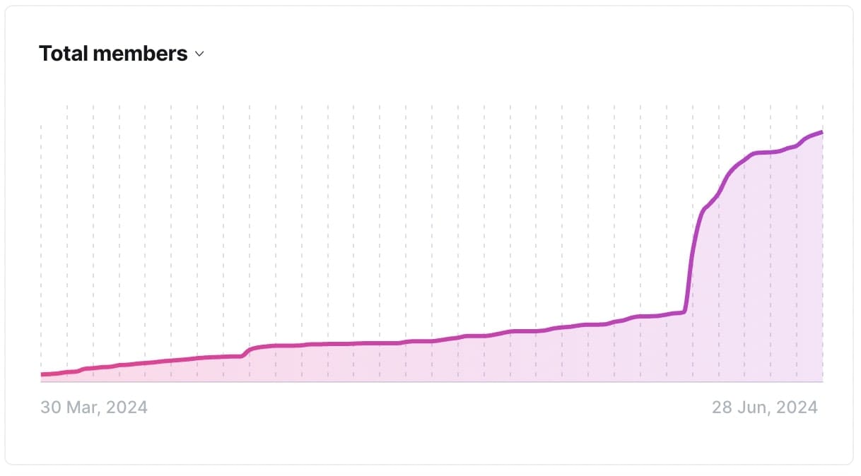 Petit point sur la taille de la communauté Upmynt : on se rapproche des 2500 membres, et ce largement grâce aux lecteurs venus du classement des meilleures newsletters IA du BDM, qui a eu un effet coup de fouet.