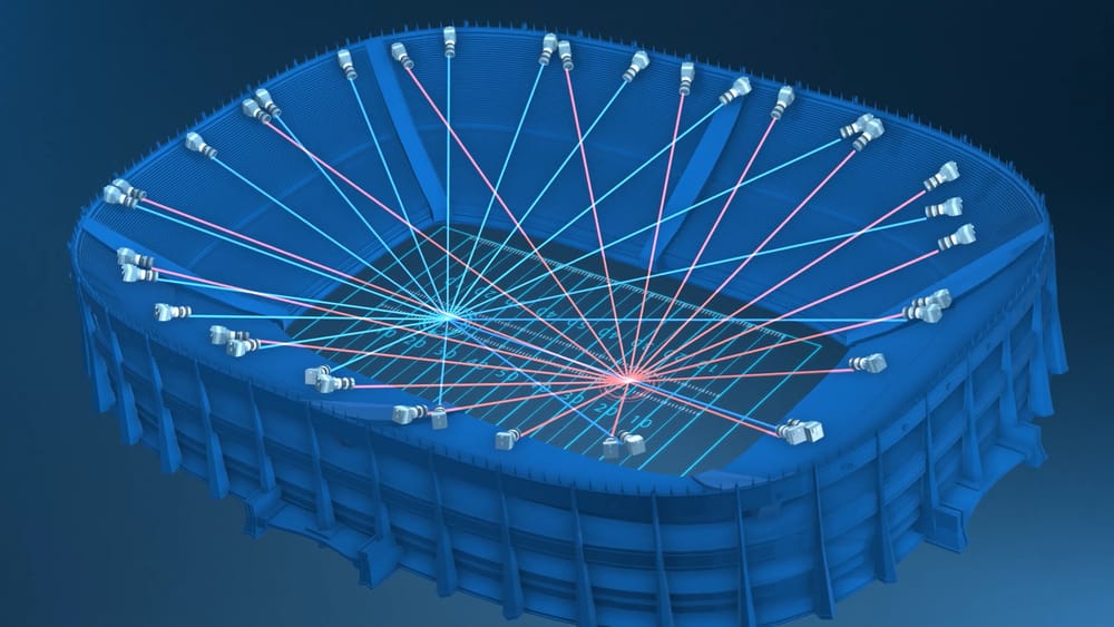Ce visionnage à 360° est permis par la disposition d'appareils photo tout autour du terrain, visant tous un point précis, et déclenchés en même temps.