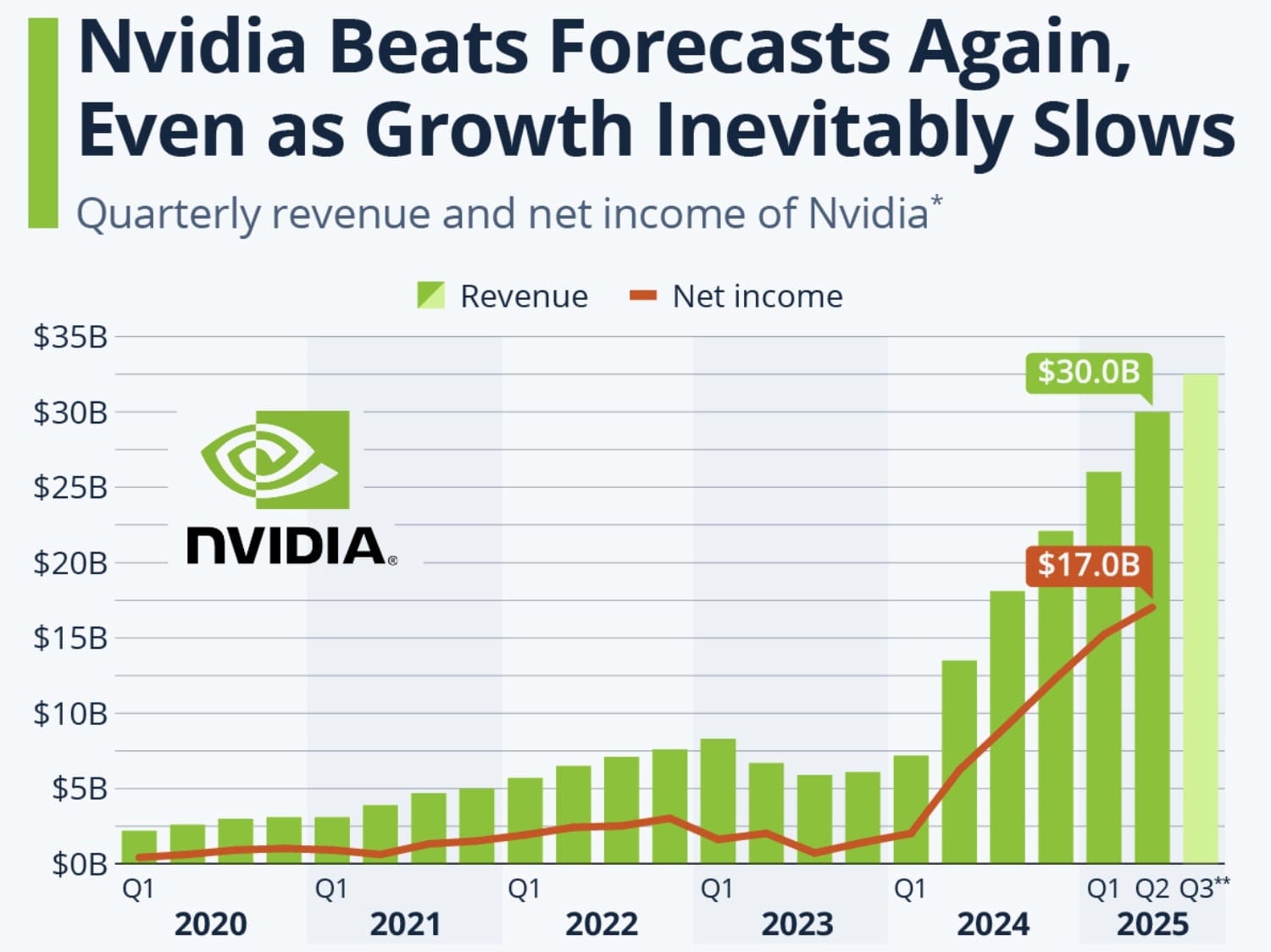 💹 Nvidia rassure. Les revenus trimestriels de Nvidia sont tombés. Les perspectives de croissance légèrement revues à la baisse ont provoqué une sanction du cours de l'action, qui a dévissé de 8%.