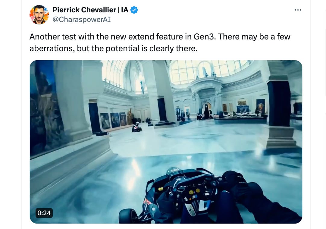 Des outils comme Kling, Gen-3 et Luma DreamMachine permettent déjà d'obtenir des rendus incroyables. Ce n'est pas encore parfait, mais le saut qualitatif de ces derniers mois est spectaculaire. Je n'ose même pas imaginer ce qu'on pourra accomplir d'ici la fin de l'année.