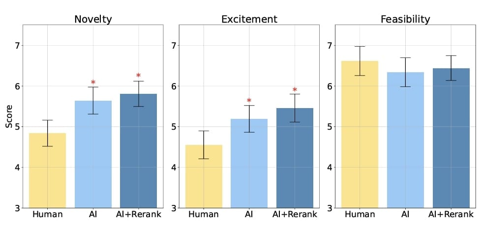 Verdict : les idées générées par les LLMs ont souvent été jugées bien plus originales que celles proposées par des humains, même si - revers de la médaille - une proportion significative étaient carrément irréalisables.