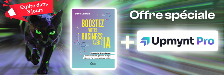 Mon guide pratique "Boostez votre Business avec l'IA" (valeur 22€) est inclus avec votre abonnement annuel Upmynt Pro pour toute souscription avant le 31 octobre.
