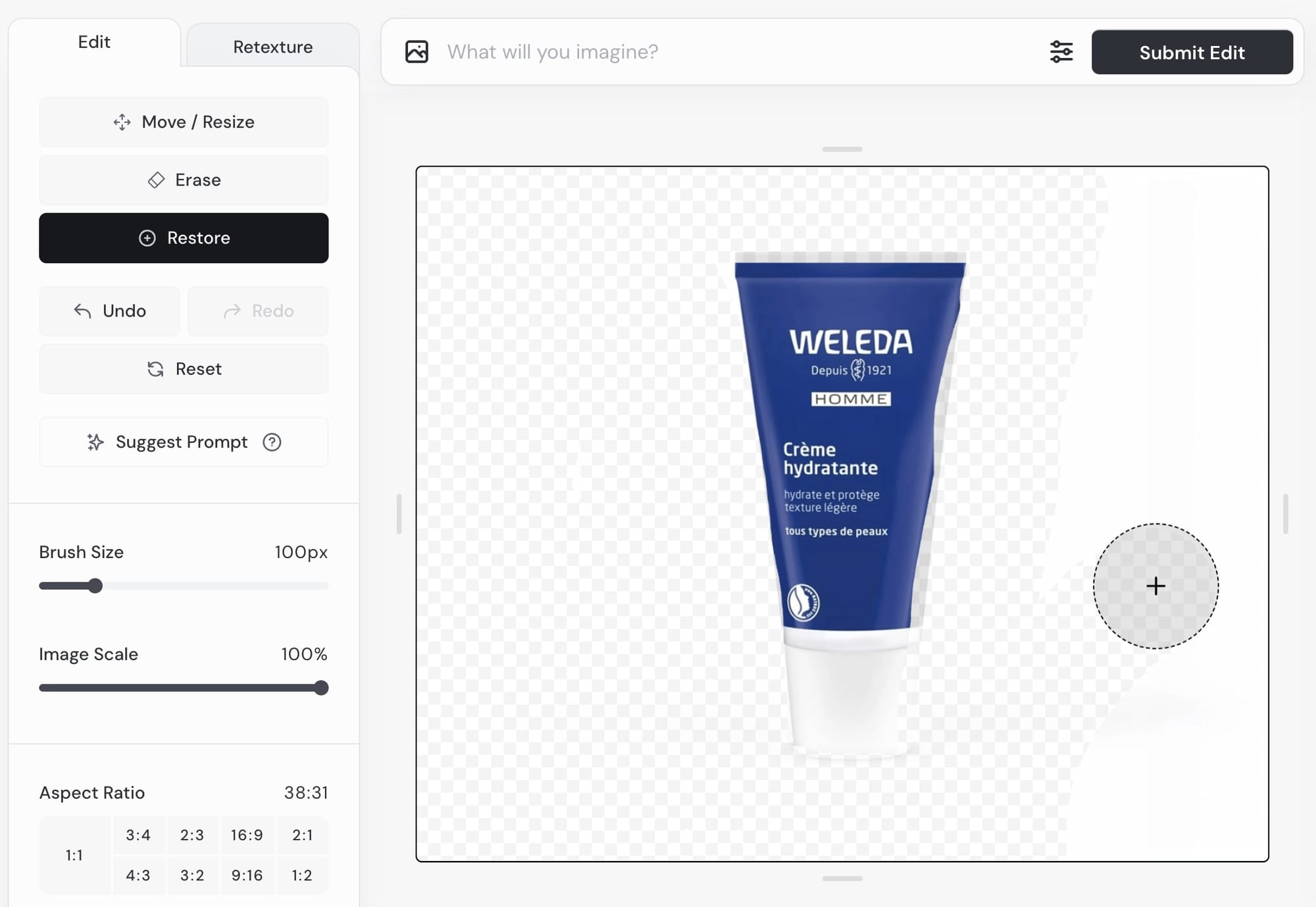 Zoomons ici sur cas d'usage absolument génial : changer le contexte de votre cliché produit.