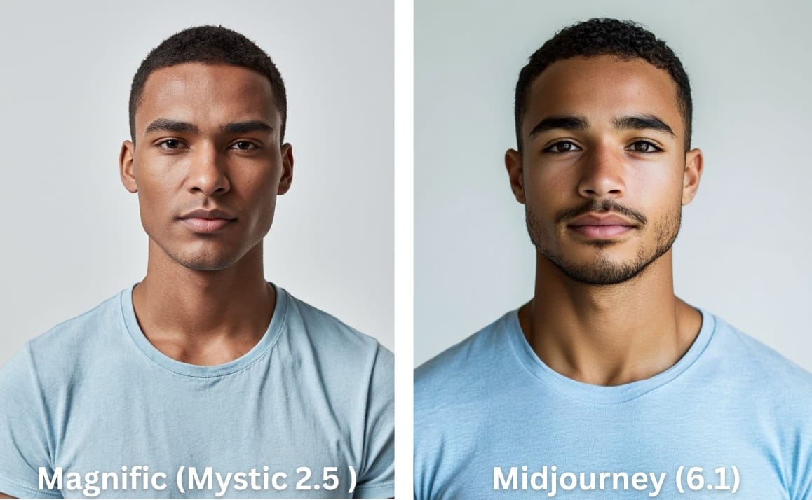 S'il fallait différencier les deux performances, je dirais que les visuels générés avec Mystic, avec ce mode Editorial Portrait, semblent un peu plus authentiques.