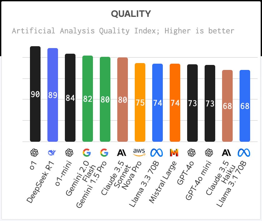 Vous obtenez donc l'accès illimité à 2 des modèles les plus performants, comme en témoigne le classement de Artificial Analysis.
