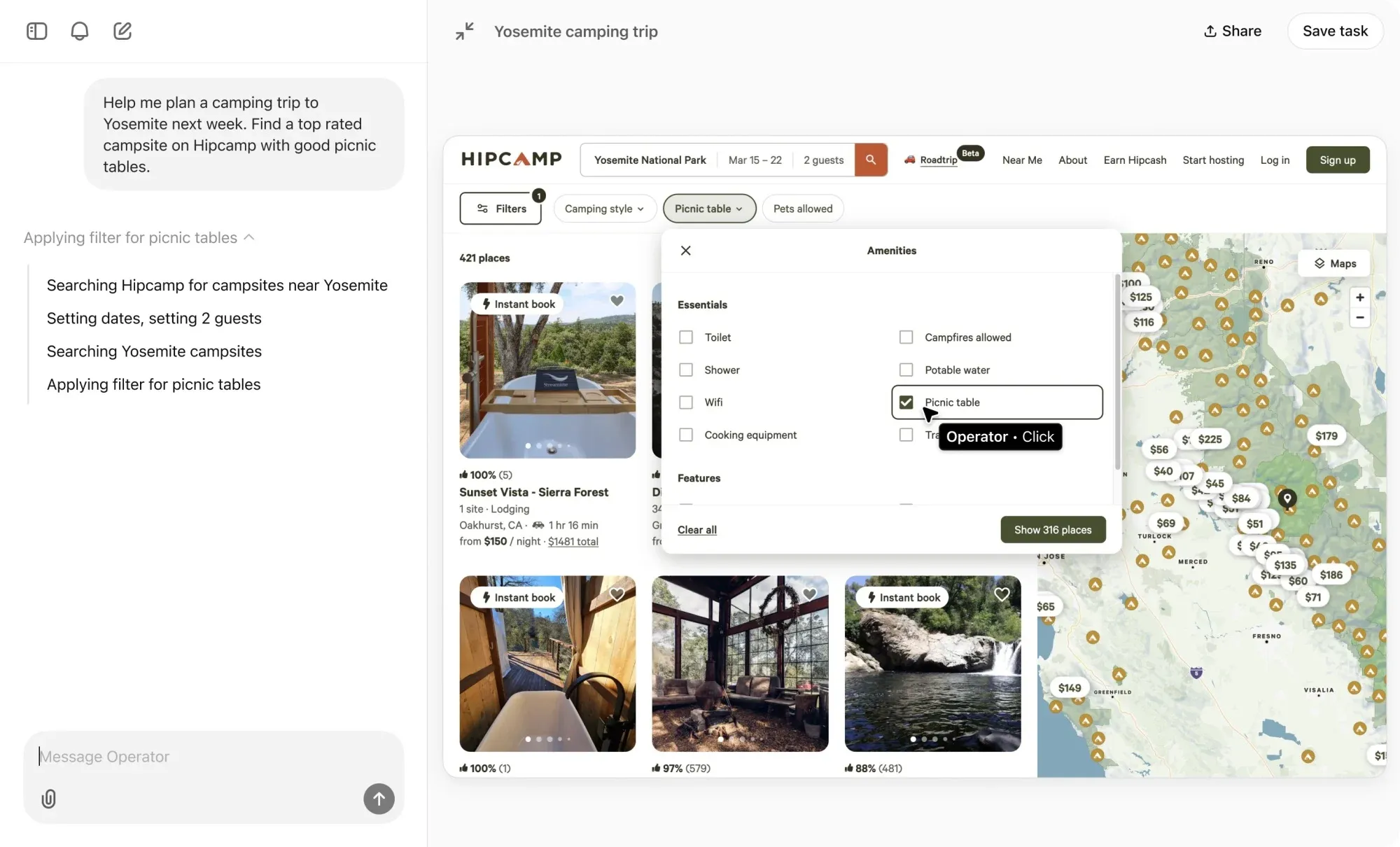 Operator exécute certaines actions en toute autonomie, mais il demande systématiquement une confirmation avant les étapes importantes (comme finaliser un achat).