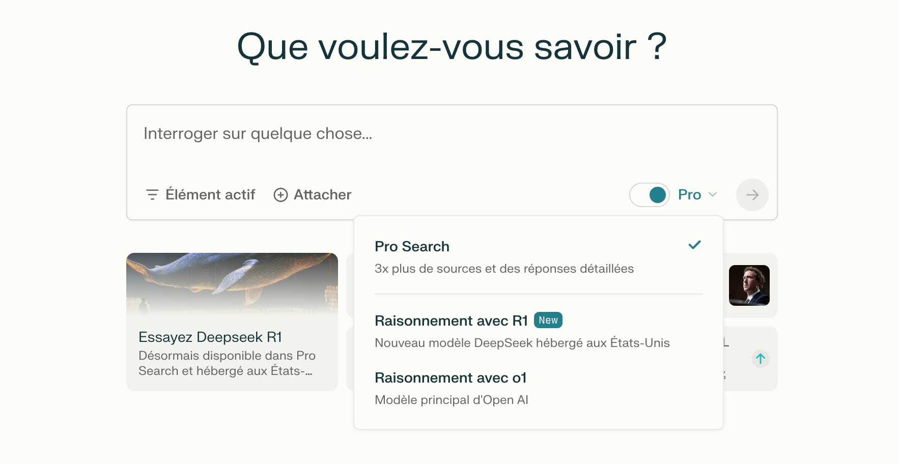 🔍 Perplexity x DeepSeek. Le moteur de recherche Perplexity permet désormais de choisir le modèle DeepSeek R1 pour les réponses aux recherches assistées par IA.