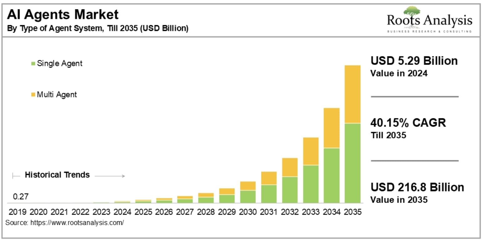 $216Mds, ce pourrait être la valeur du marché de l'IA agentique d'ici 2035, soit un joli taux de croissant annuel de 40,15% (!).