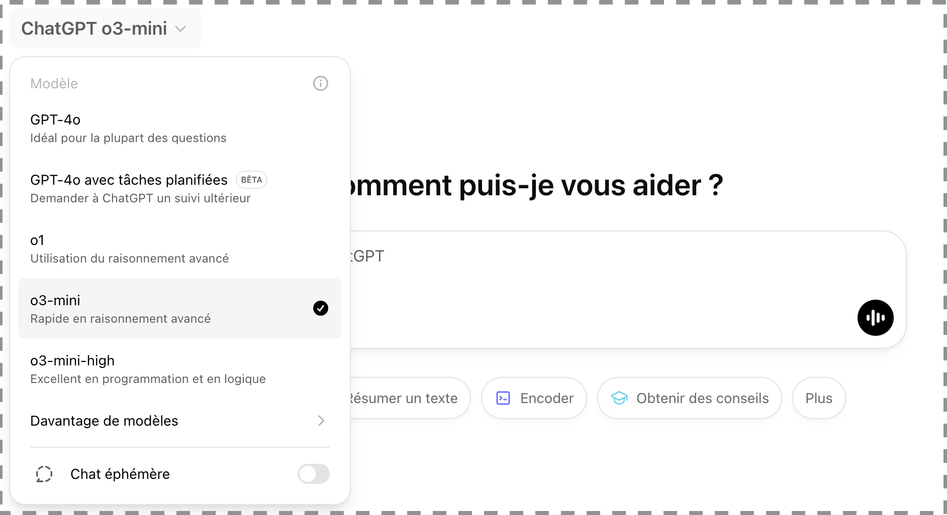 Si vous êtes utilisateur gratuit, vous pouvez tout de même essayer o3-mini dans ChatGPT en sélectionnant le bouton "Raisonner" sous la barre de prompt.
