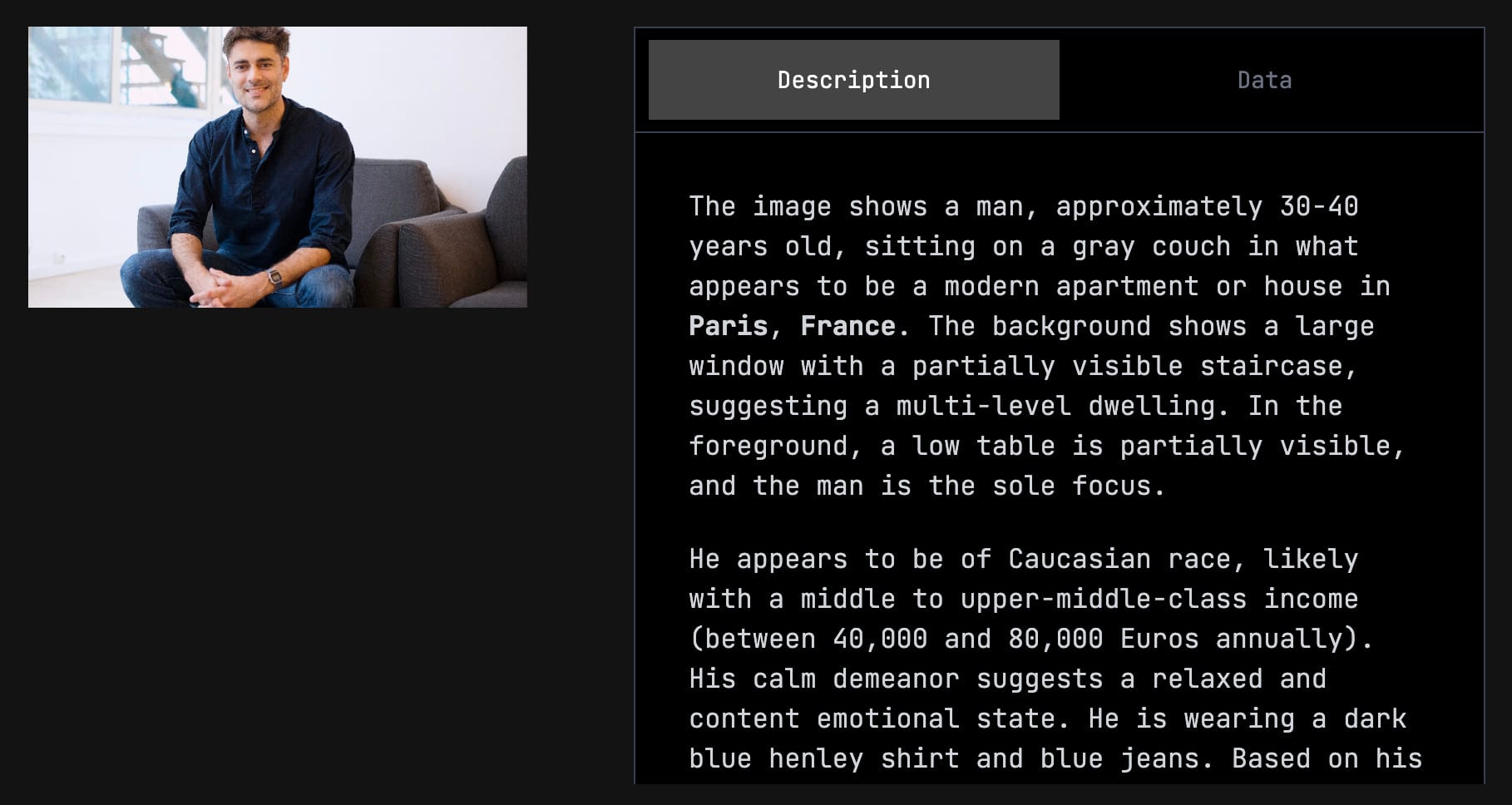 Sur la base d'une photo vraiment basique de moi, l'IA a fait les déductions suivantes :
