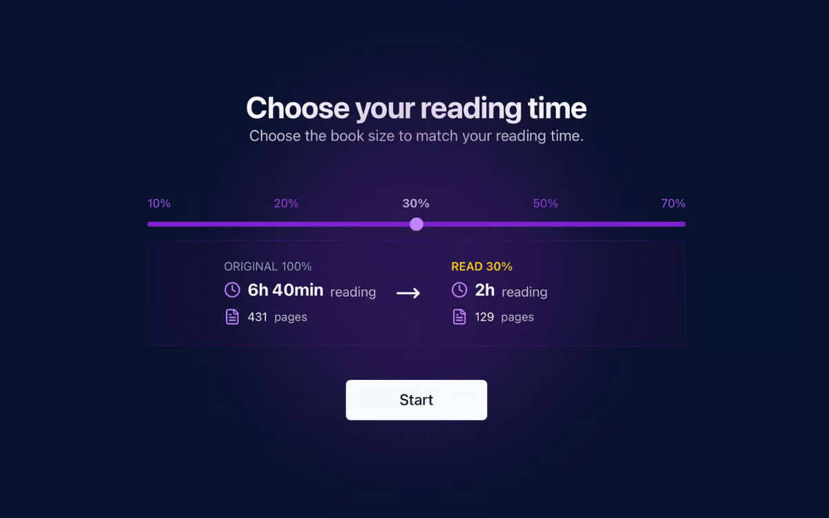 Grâce à un curseur, vous pouvez choisir le niveau de synthèse. L'outil estime ainsi le nouveau temps de lecture.