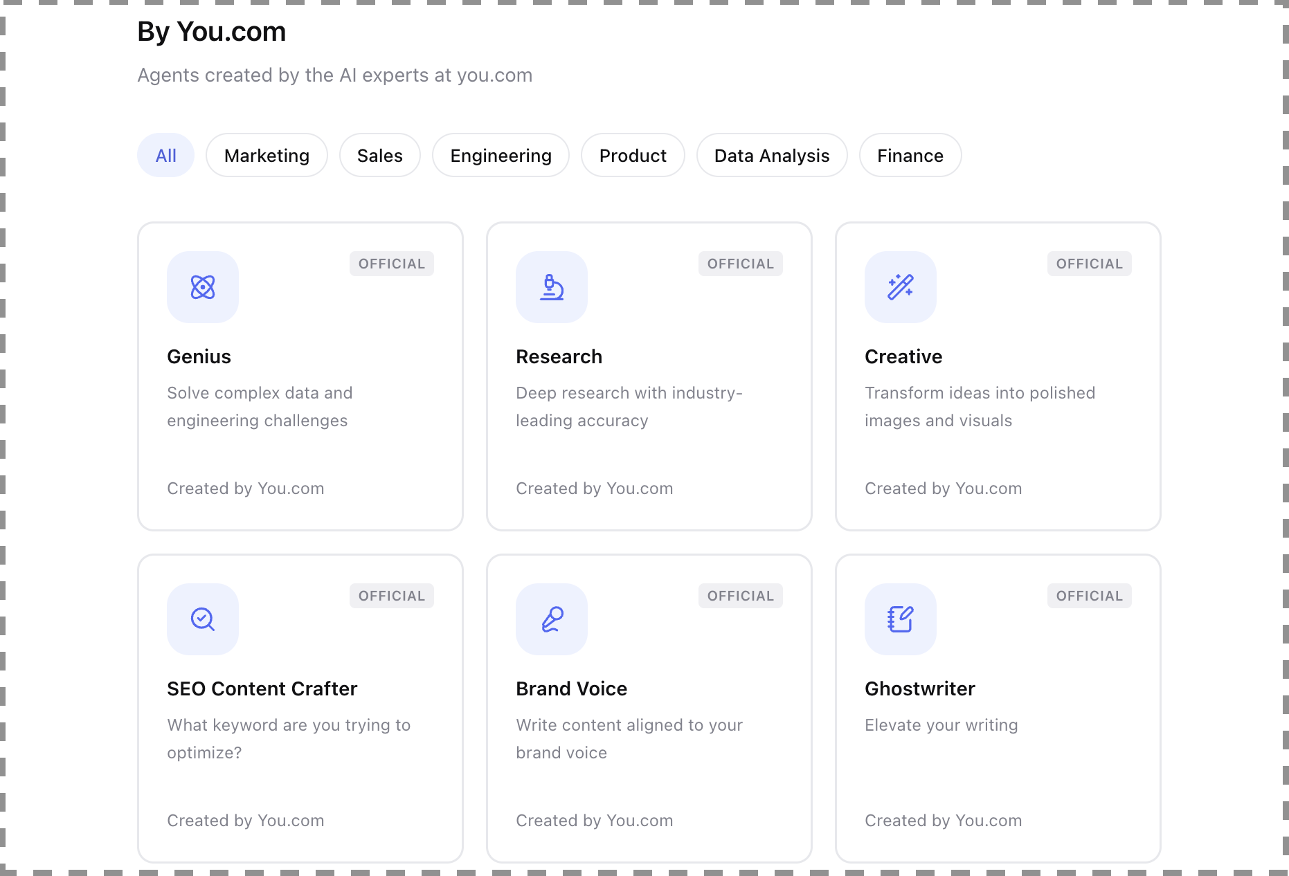 ▹ Outils : You.com muscle son offre d'assistants spécialisés.