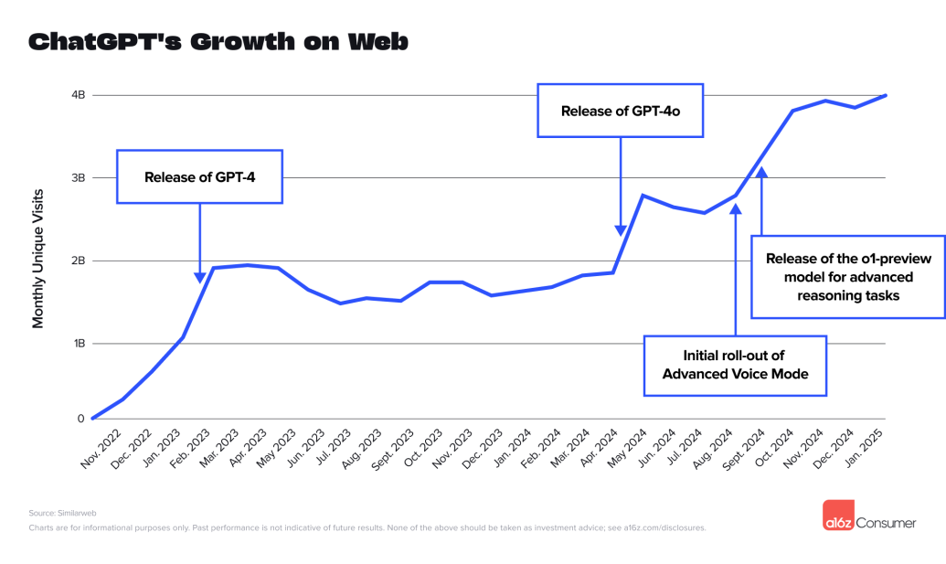 📈 ChatGPT va bien, merci pour lui. On pourrait croire que l'assistant leader subit la concurrence croissante des autres chatbots, devenus de plus en plus compétitifs (Gemini, Copilot, DeepSeek, etc). Il n'en est rien.