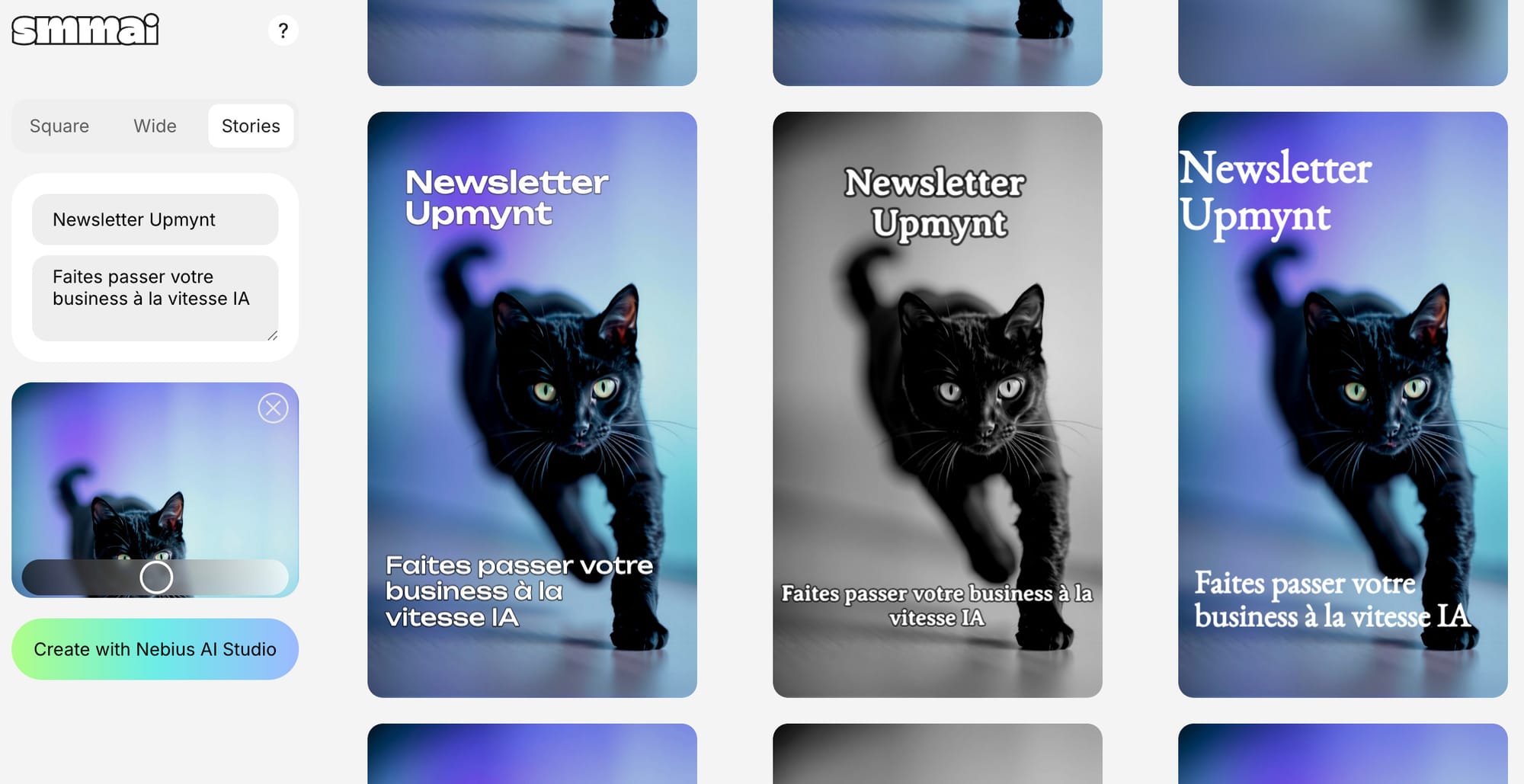Vous écrivez votre texte et vous générez le visuel de votre bannière. Là encore, pas de limites sur le nombre de générations.