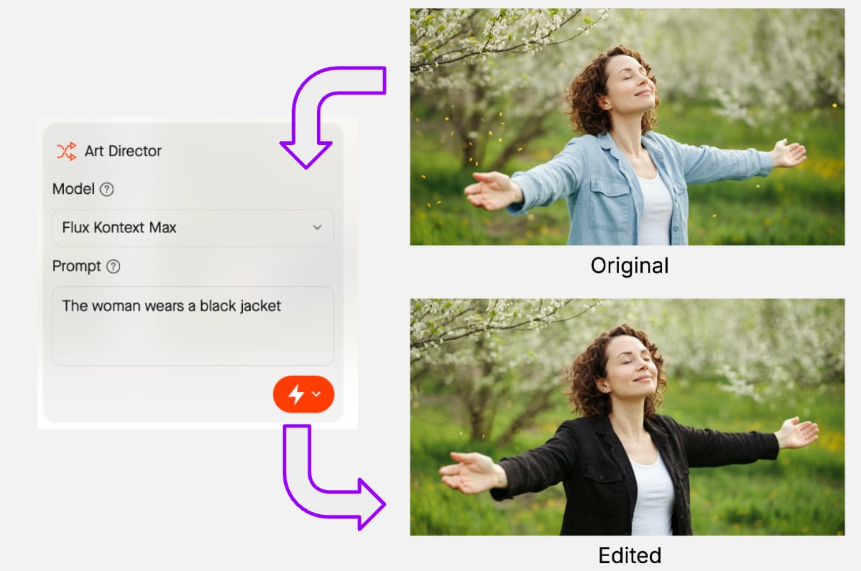 Visual Electric incorporait déjà un assistant édition. Il tourne désormais sur Flux Kontext, le modèle spécialisé sur ce front… Et le résultat est d'autant plus convaincant.