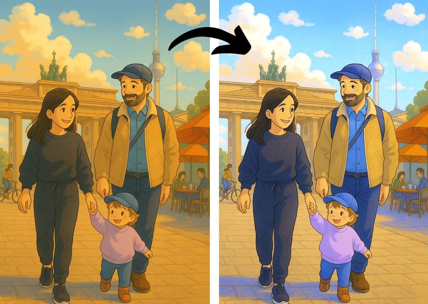Vous avez peut-être remarqué (et regretté) la teinte jaunie des visuels générés par IA. Le problème touche très nettement les illustrations (type Ghibli par ex) mais aussi les photographies.