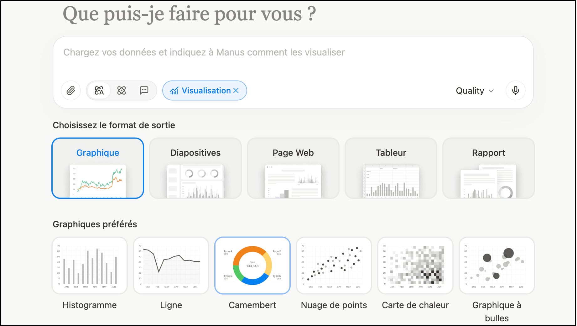 L'agent à tout faire Manus propose depuis quelques jours une fonctionnalité de visualisation de vos données.
