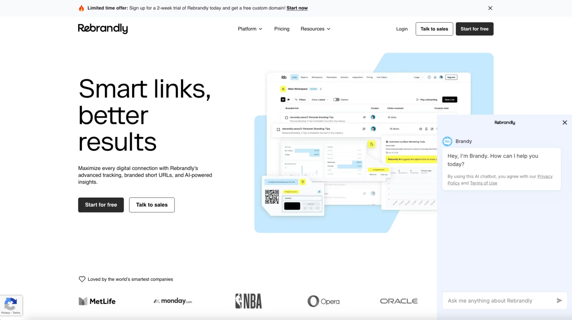 ▹ Rebrandly. Grâce à l'outil d'automatisation Zapier, ce service Rebrandly (création de mini URL) prétend avoir révolutionné son service client. C'est plus précisément la solution Zapier Chatbot qui a été exploitée ici.