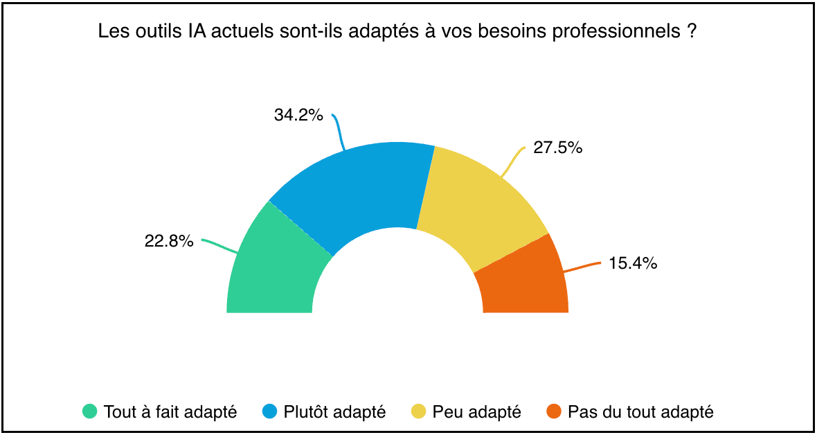 43% d'entre vous regrettent ainsi que les outils IA soient peu ou pas du tout adaptés à vos besoins. C'est assez énorme.