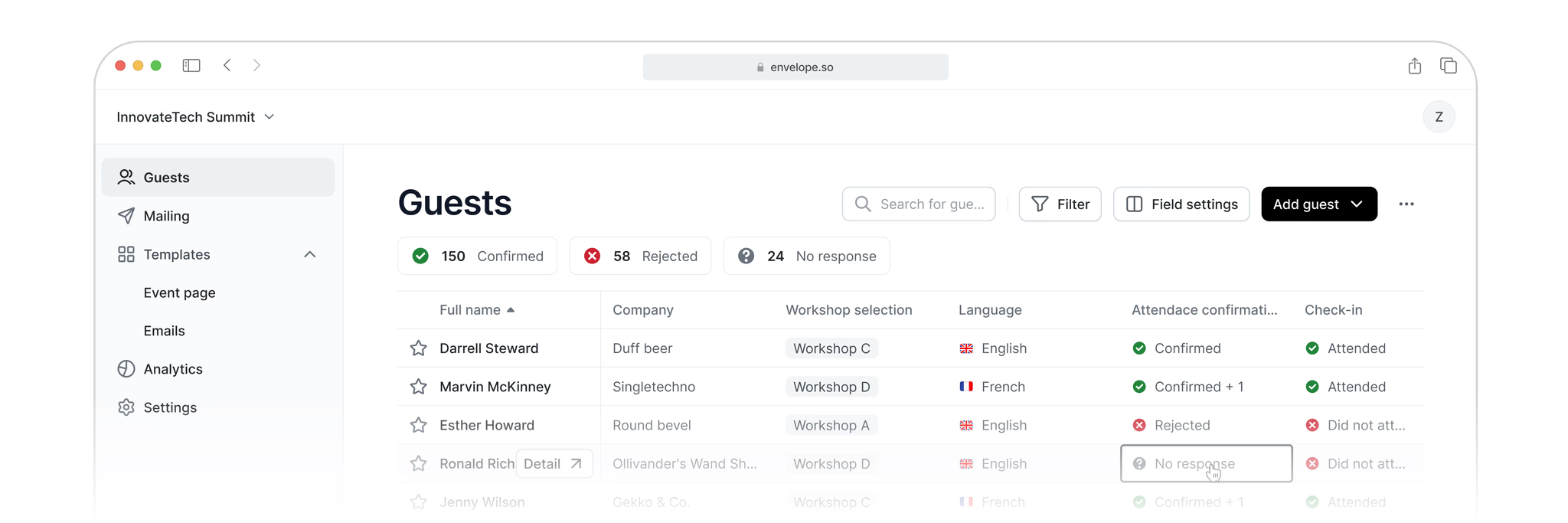 ▹ Envelope : Un agent IA dédié à l’événementiel : vous décrivez votre event en langage naturel et il vous génère les pages d’événement/inscription, la billetterie (paliers, codes promo), les formulaires RSVP et plus.