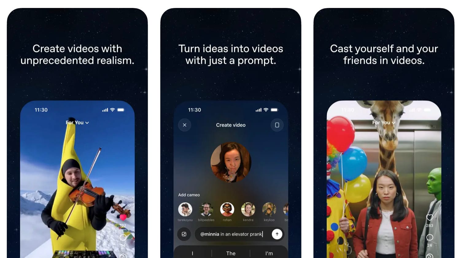 - Fonctionnalité Cameo : Il est possible d'injecter des personnes existantes dans les séquences générées. De nombreux essais avec Sam Altman ont inondé la toile (avec plus ou moins de goût).