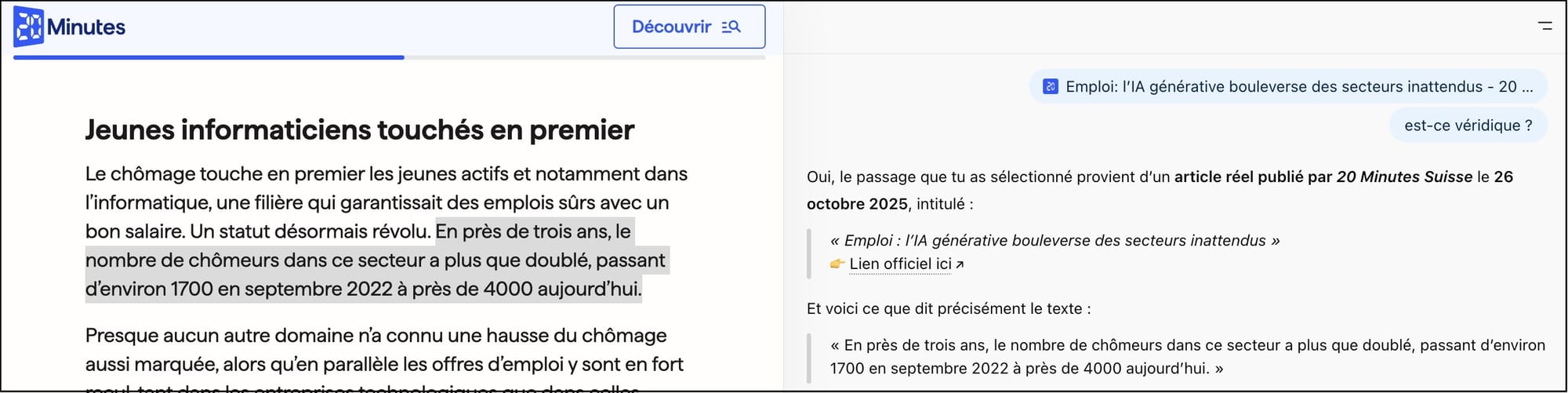 2️⃣ Sélectionner un extrait précis pour vérifier sa véracité : Atlas ne sert à rien, Comet fait le taf