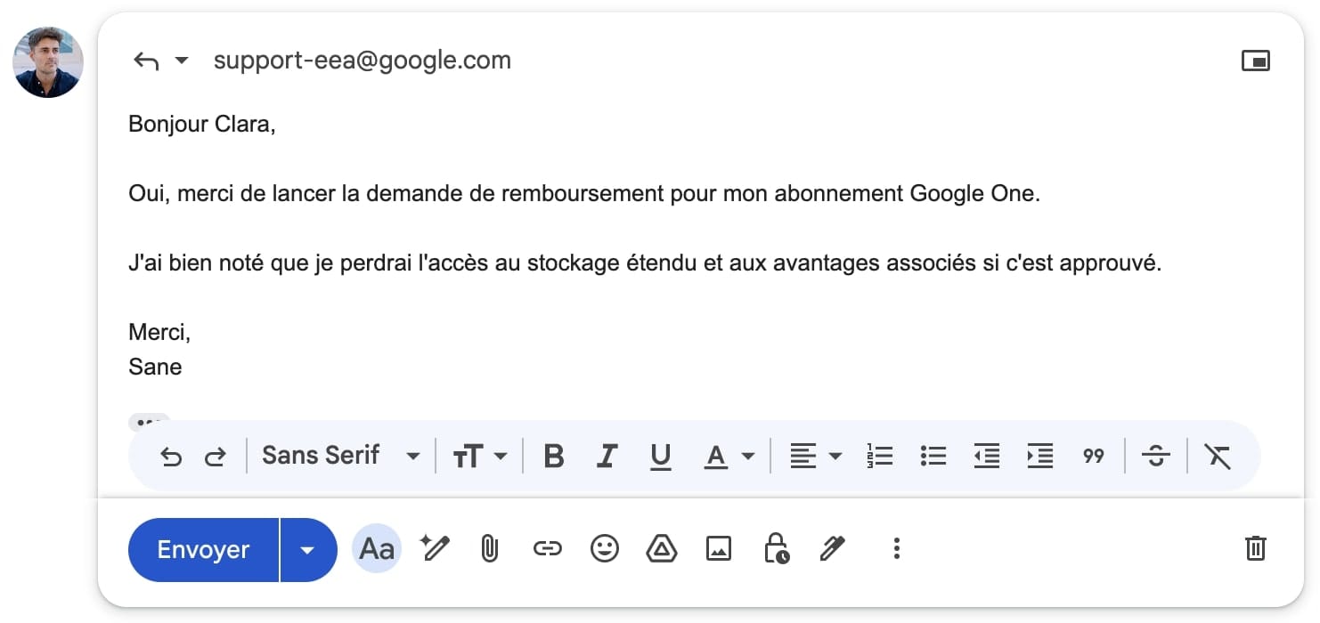 Par exemple, Perplexity avait déjà rédigé cette réponse dans le cadre d'un échange entre Google (support) et moi.