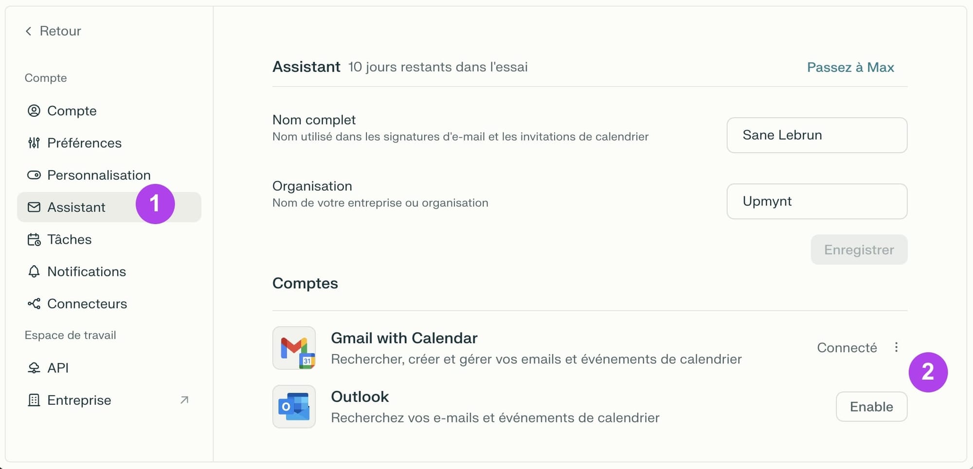 3️⃣ Connectez Perplexity à votre service d'email dans les paramètres sur le site Perplexity.
