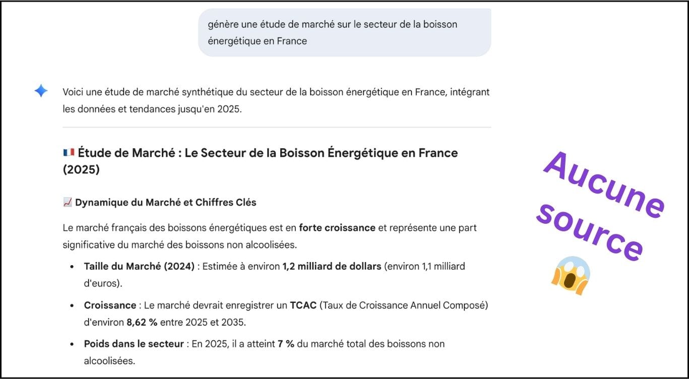 Seul le mode "Deep Research" permet à Gemini d'afficher ses sources. Mais c'est une énorme faiblesse que cela ne soit pas possible sur des recherches standard.