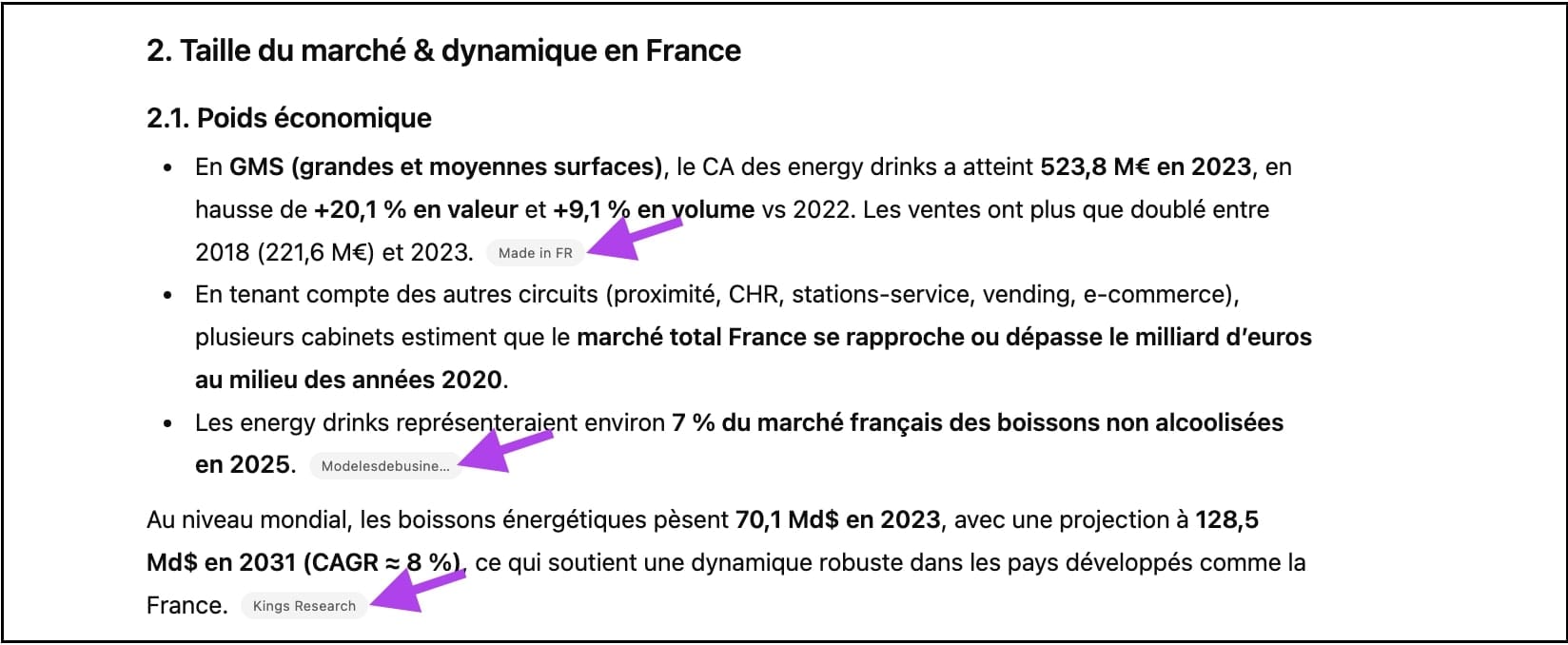 ChatGPT, pour sa part, source chaque fait ou statistique relayé, avec une référence (liée) pour chacun d'entre eux.