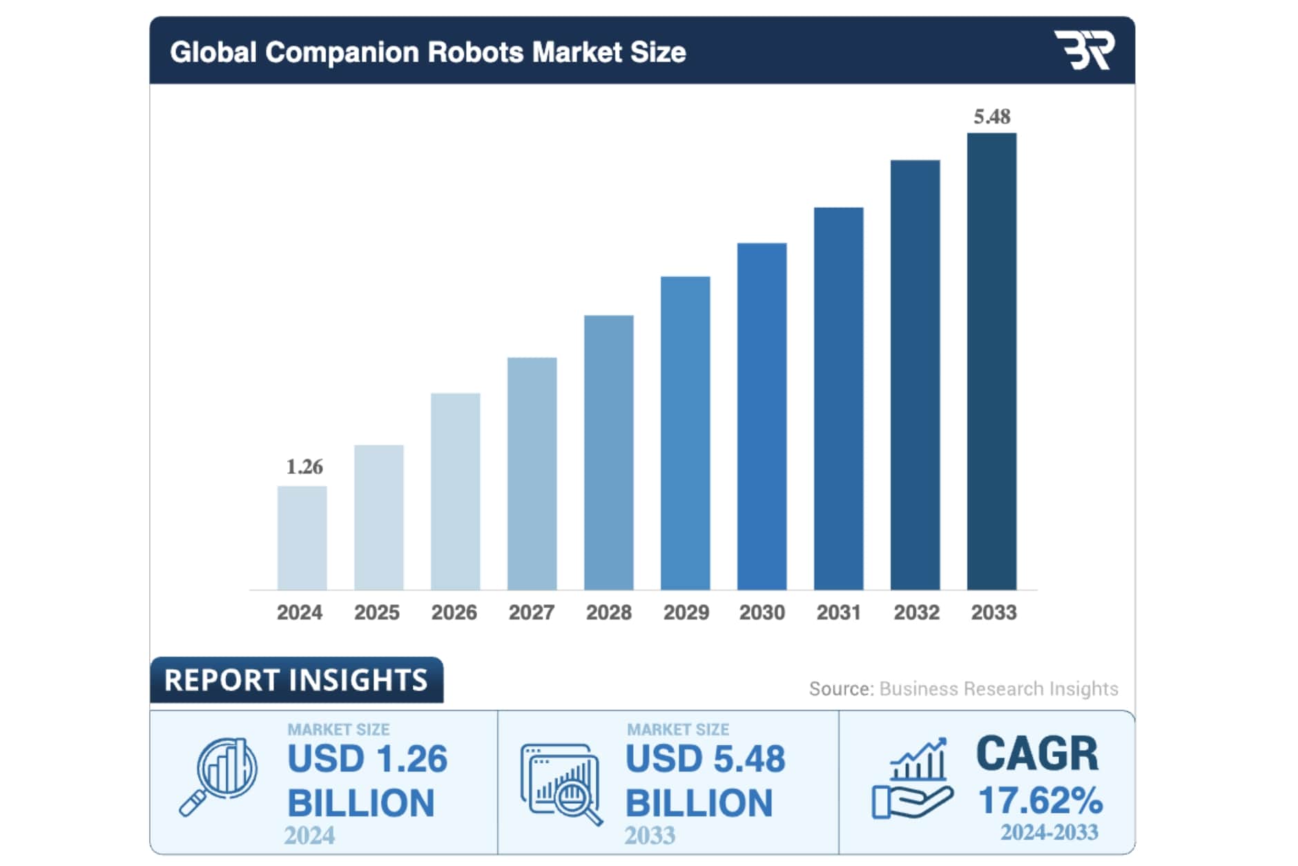 En 2024, la valeur mondiale du marché des robots animaux de compagnie était estimée à près de 1 à 1,5Md de dollars selon les sources, avec une projection pouvant atteindre de 3,8 à 5,5Mds d’ici 2033.