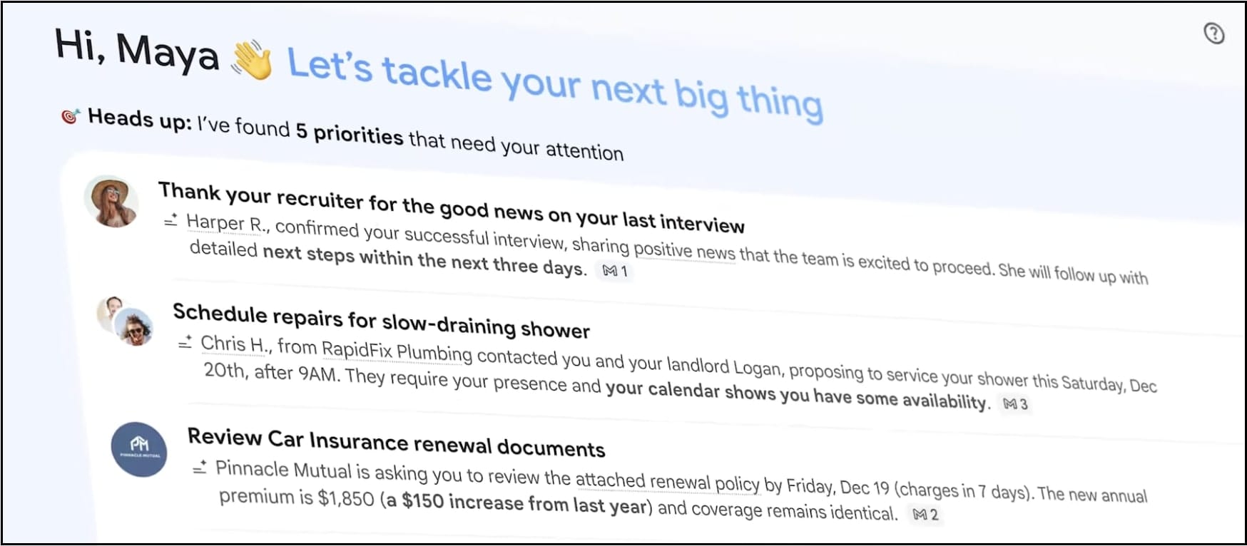 - AI inbox : Une interface personnalisée de votre boite de réception, avec les items les plus urgents à traiter, et d'autres regroupés par sujet. Ca sent la fausse bonne idée à plein nez but let's see…