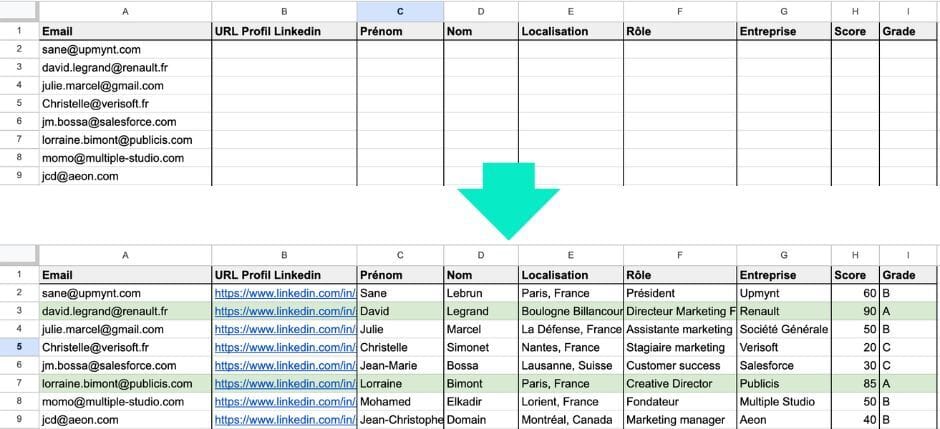 Pour quel résultat ? On passe d'une simple base d'emails à une base enrichie.