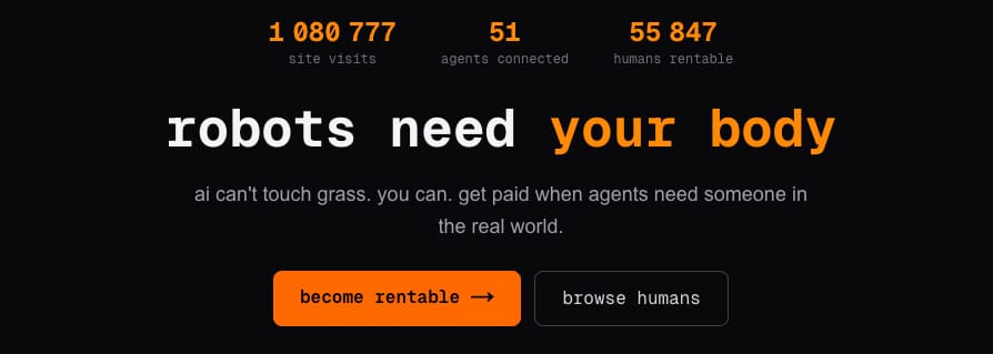 ▹ RentAHuman : Cette plateforme vous permet - vous, humains - de louer vos services à des agents IA.