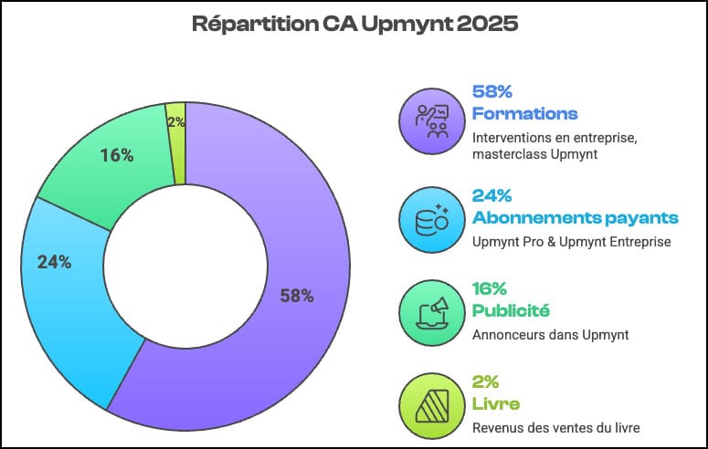Voici en toute transparence comme se répartit le CA de Upmynt pour l'exercice fiscal 2025.