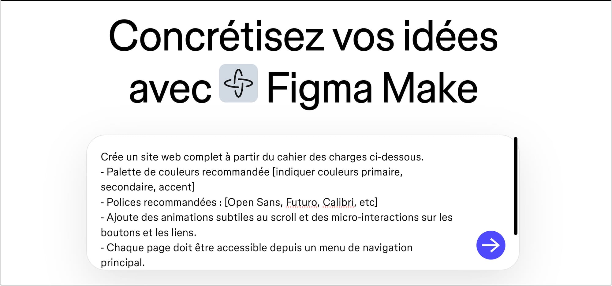 Ouvrez Figma Make et collez le résultat du prompt précédent, précédé de cette instruction :