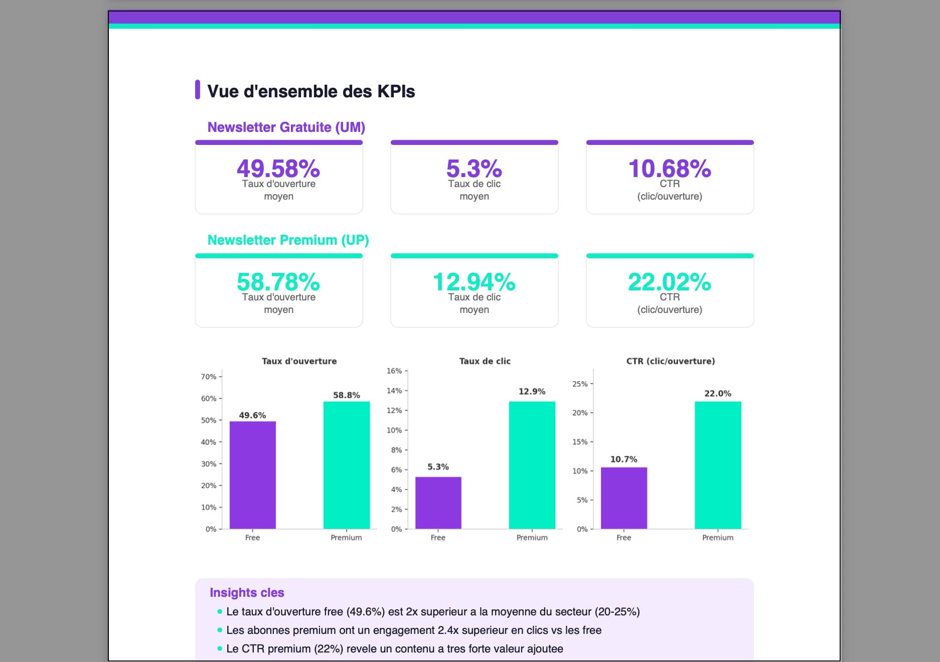 En s'appuyant sur tous ces fichiers et avec des instructions assez minimales, Claude génère un rapport de performance en bonne et due forme.